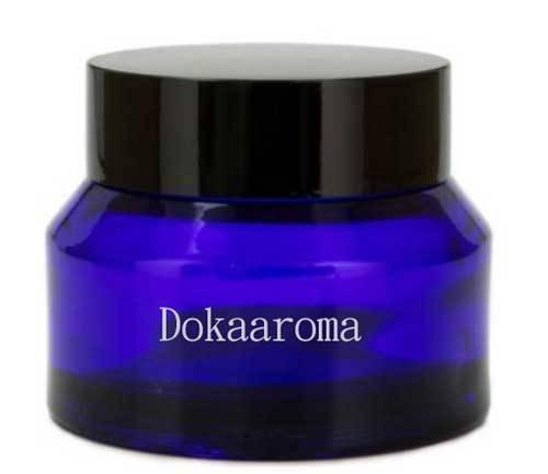 容量:30g (1oz) 顔色 : 藍色 尺寸:高度43mm *直徑53mm 規格:斜肩玻璃霜膏瓶配白色PP墊片白色蓋